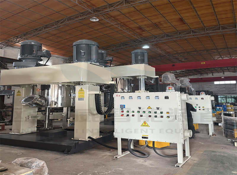 2.工作原理:可采用自動化控制系統進行配方管理,操作員設置好攪拌時間、轉速等參數,設備自動運行,生產效率大大提升。物料投入罐體,設備工作時,驅動系統提供動力,攪拌器低速運動,帶動物料旋轉翻涌;分散葉片高速旋轉,在分散葉片的剪切力作用下,聚集體被打碎、分散,從而逐漸形成均勻的分散體系。